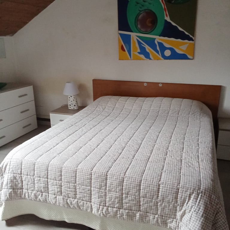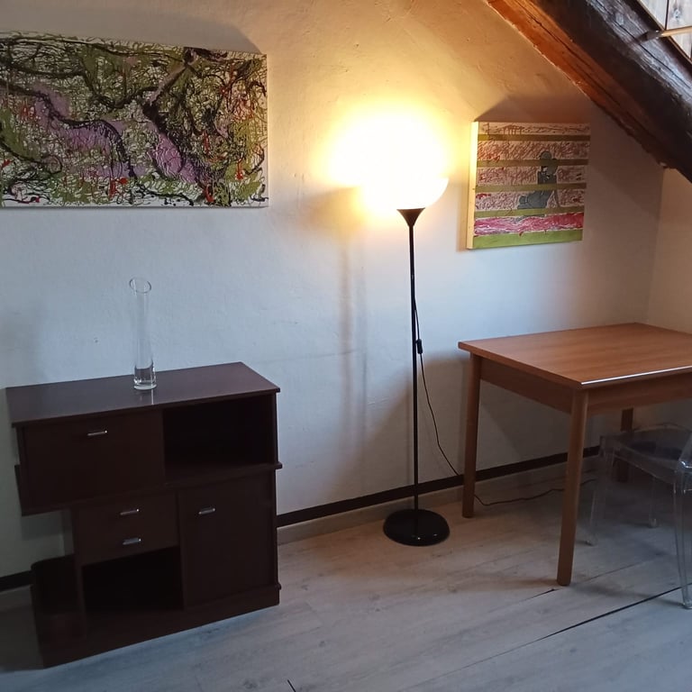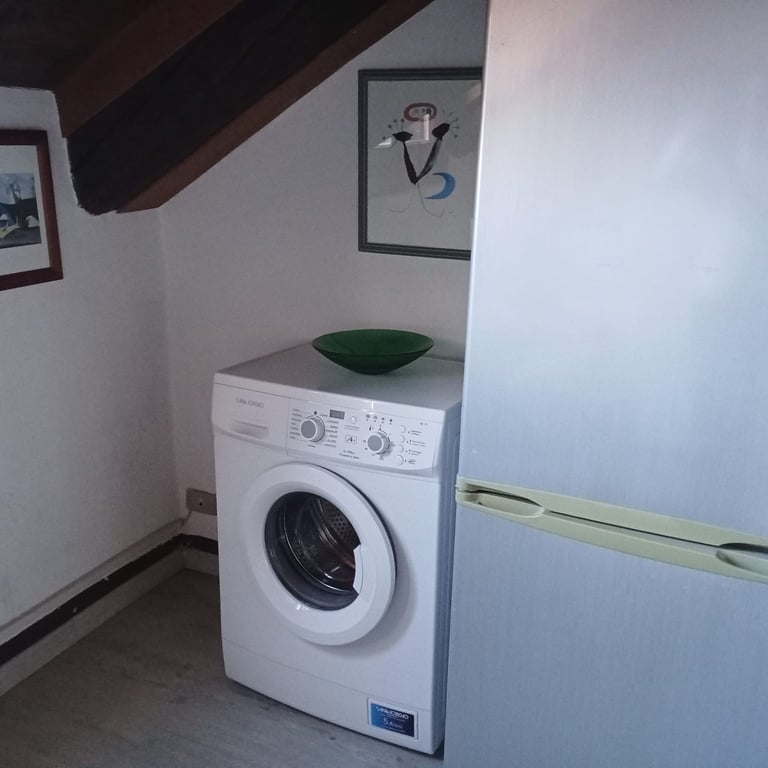 Questo appartamento mansardato presenta 1 camera da letto, un bagno, un soggiorno con cucina completamente attrezzata.